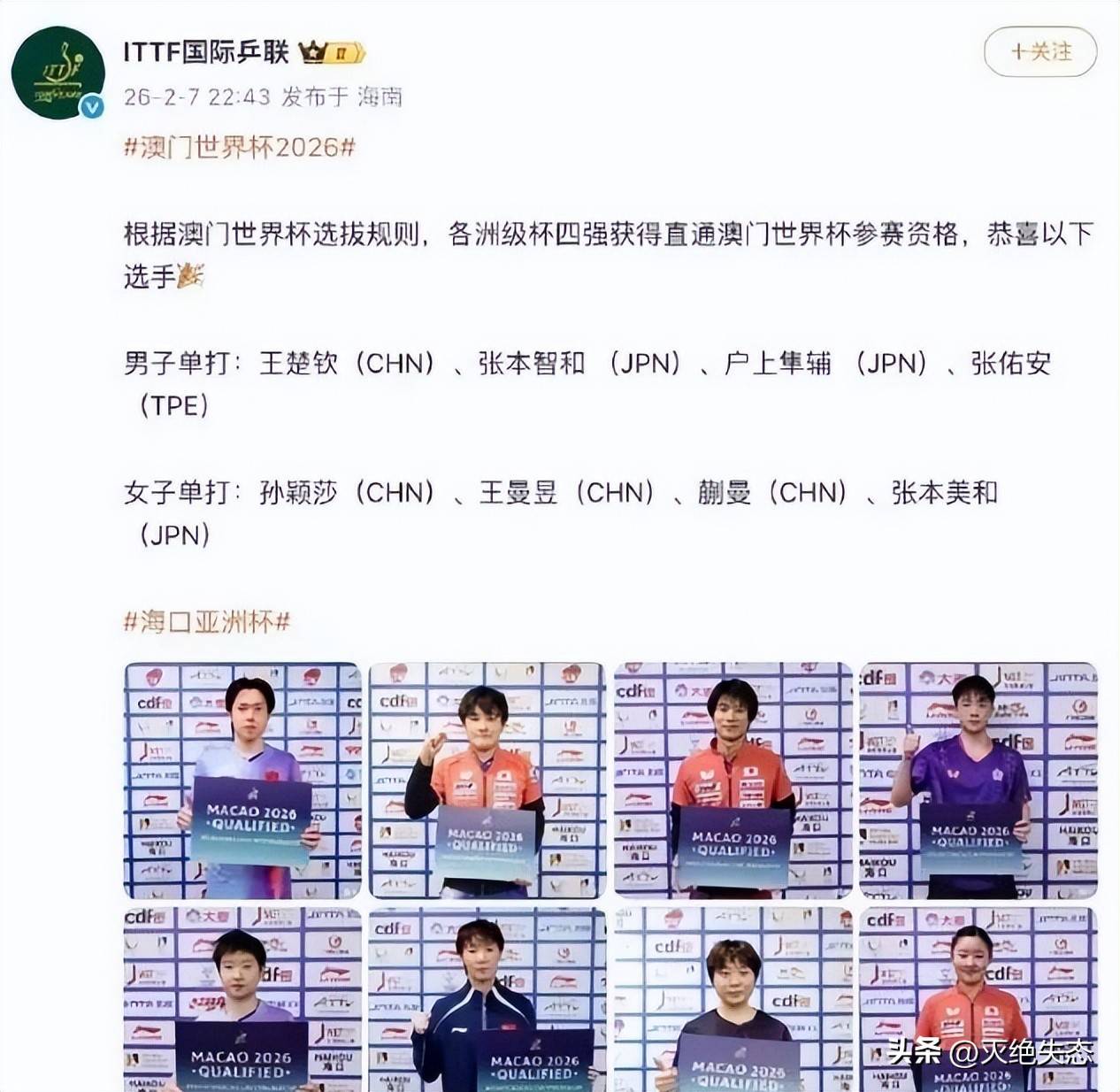 这回亚洲杯张本智和获得男单银牌,户上隼辅铜牌,张本美和也在女单前四,当前已知的入场券就有4张。
