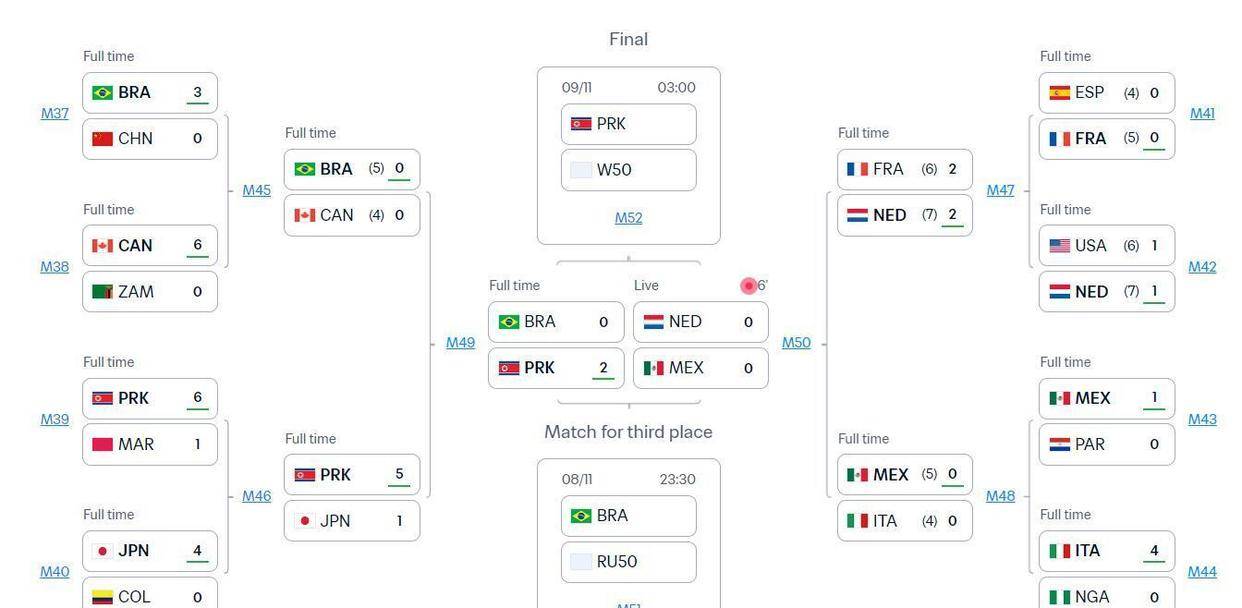 本届U17女足世界杯四强名单呈现一个有趣现象:除了巴西队,其余三支队伍(朝鲜、墨西哥、荷兰)均来自同一个小组——C组。这使得C组被球迷称为“死亡之组”。
