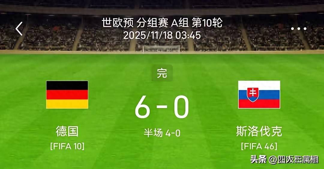 2026世界杯赛程,世界杯投注,世界杯球队阵容,世界杯预测,世界杯直播/全网最全的2026年世界杯专题报道,提供赛程时间表、球队阵容、赔率分析、投注预测与实时比分,助你掌握每一场焦点战况。2025年11月18日凌晨3:45,德国队在世预赛欧洲区A组的最后一轮比赛中迎战斯洛伐克。最终,德国以6-0的压倒性胜利战胜对手,以五连胜的成绩结束小组赛,不仅顺利锁定小组第一,还直接晋级2026年美加墨世界杯。此外,这场大胜还让德国队有望冲击世界杯种子队的席位。